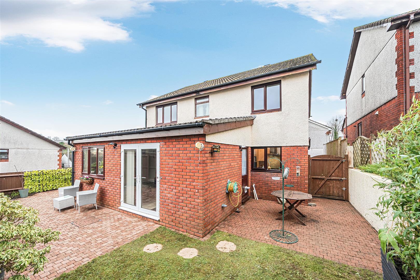 Outside, a driveway and pathway bordered by a neat lawn with established shrubbery, welcomes you to the front door. There is space for 3 vehicles on the driveway and there are also bilateral wooden gates flanking the property giving access to the rear garden.